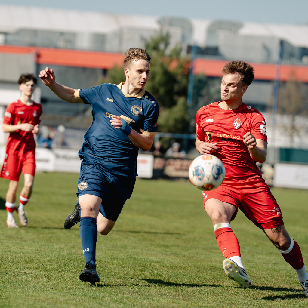 (rl) Nach einer Partie auf Augenhöhe musste der OFC gegen den ambitionierten Tabellenführer MSV1919 Neuruppin eine unglückliche 0:2 (0:1) Heimniederlage hinnehmen. Denn lange Zeit war der Gastgeber bei herrlichem Frühlingswetter das spielbestimmende Team und gab den Gästen aus der Fontanestadt einige Rätsel auf. So verstand es der OFC mit seiner körperlichen Robustheit aber auch mit dem erforderlichen Spielwitz die Gäste zu beeindrucken. Leider fehlte für diese engagierte Spielweise die Belohnung in Form eines zählbaren Erfolges. Einig vielversprechende Gelegenheiten gab es durchaus, doch dem Kopfball von Kwasi Boateng (21.) fehlte die Präzision, der Distanzschuss vom auffälligen Neuzugang Aaron Janeck (24.) strich übers Gebälk und beim Flachschuss von Kapitän Elias Eckert (29.) parierte MSV-Keeper Marco Melentijevic mit etwas Mühe. Doch mit dem Selbstbewusstsein eines Spitzenteams kamen die bis dahin farblos bleibenden Gäste unmittelbar vor dem Pausenpfiff zum etwas schmeichelhaften Führungstreffer, als der aufgerückte Kapitän Jannis Neumann (44.) nach einem Eckball von Kevin Moreira Godinho per Oberarm und Kopf einnetzte. Damit war der Spielverlauf schon etwas auf den Kopf gestellt. Aber der Gastgeber ließ sich auch nach dem Seitenwechsel nicht entmutigen, versuchte das Resultat zu korrigieren, ließ jedoch etwas die erforderliche Durchschlagskraft vermissen. Recht bemerkenswert der Ansporn von OFC-Kapitän Elias Eckert nach einer Stunde an sein Team, noch mehr zu machen um den Rückstand in eine Führung umzuwandeln. Doch leider vermochte auch der OFC-Anführer den quirligen Ginel Ronde (62.) nicht stoppen, der die Freistoßeingabe von Kevin Moreira Godinho am langen Pfosten geschickt und eiskalt verwandelte. Damit war die Begegnung letztlich zu Gunsten des Aufstiegsanwärters etwas glücklich entschieden. In der hektischen Schlussphase wurde es dann noch etwas farbenfroh, woran beide Teams nicht unbeteiligt waren. So war MSV-Trainer Dietmar Demuth zufrieden mit dem Spielausgang und damit gegen einen alles abverlangenden Gastgeber zurück in die Spur gefunden zu haben. Dagegen sprach OFC-Trainer Enis Djerlek von einem bitteren Tag mit einer unglücklichen Niederlage seines Teams, dass viel investiert hatte sich jedoch nicht entsprechend belohnte.